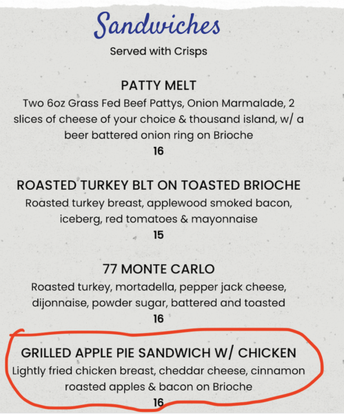 I also decided that I couldn’t pass up a sandwich named “Grilled Apple Pie Sandwich with Chicken, which Morgan said was her personal favorite sandwich – so I ordered that as well.
