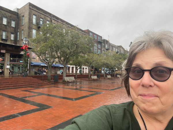 I spent New Year’s Eve and the first day of 2023 in Savannah, Georgia. I had a hotel on Bay Street, one street from the waterfront pictured above. When I went looking for dinner, I was amused by the name of a small place near the hotel – Treylor Park. It had an image of a travel trailer on its sign. Obviously a play on words. There was a line for dinner but they had a lovely bar. So I left my name, ordered a Martini, and reviewed the menu. How could I not eat where the menu listed a “Grilled Apple Pie Sandwich with Chicken?”